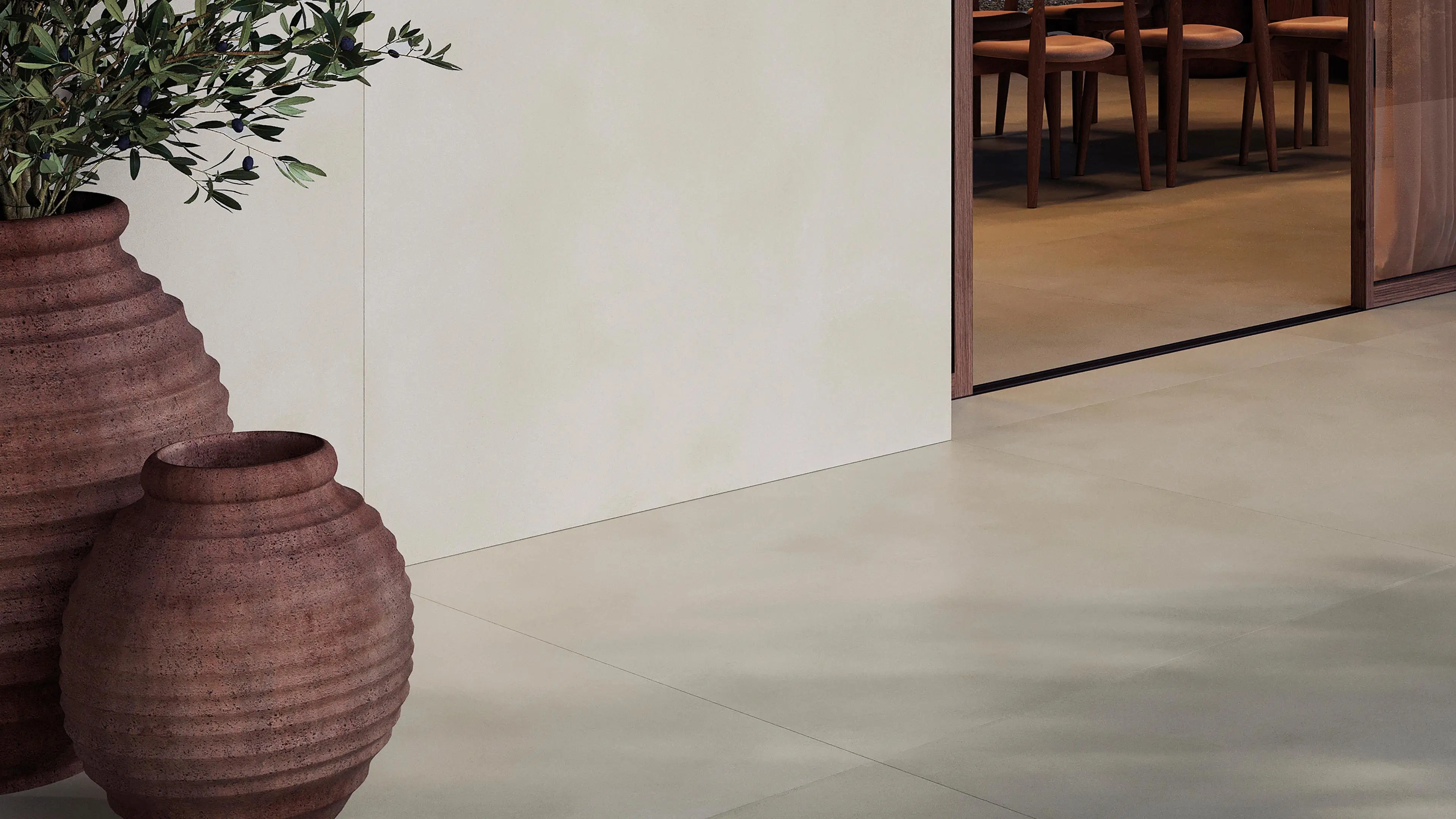 De Porcelanosa Santorini Grey wandtegel biedt een moderne, industriële uitstraling met een strakke, natuurlijke afwerking. Deze grote keramische wandtegel heeft een vlak oppervlak en een stijlvolle betonlook, perfect voor minimalistische en eigentijdse interieurs.